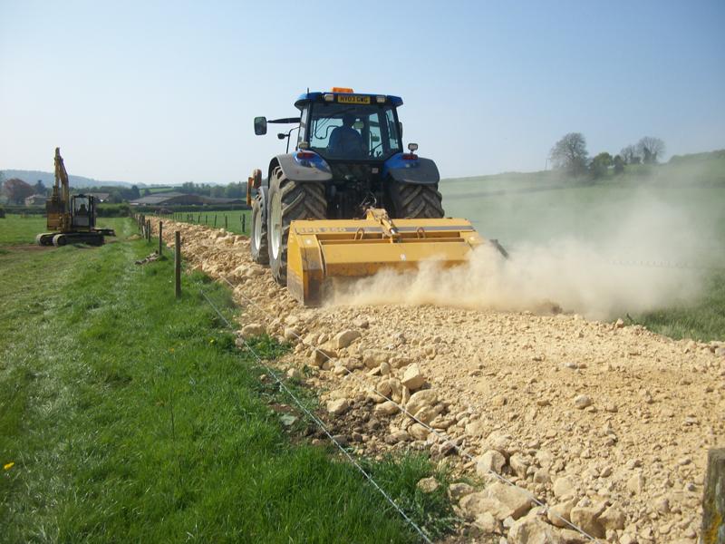 Now the stone has been ripped through to a workable uniformed depth, the crusher can work freely and smoothly through the stone, crushing consistently. We operate the kirpy stone and concrete crusher system which enables us to crush road and track material to a more desirable size to suit the tracks particular requirement. Objectives of the crushing cycle is to obtain the ideal stone particle size and stone dust quantities. When customers require a softer/finer final top (for example cattle tracks) we simply thinly crush over top and re-grade and compact.