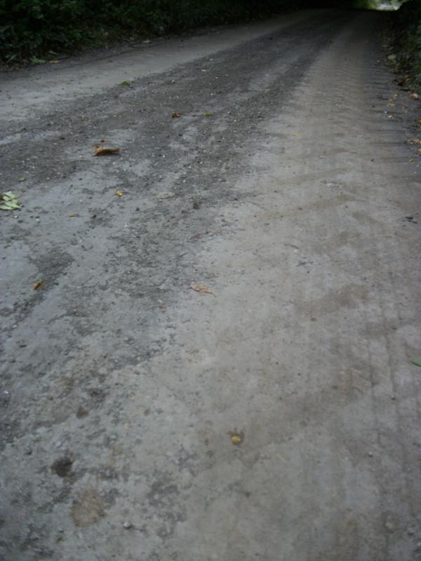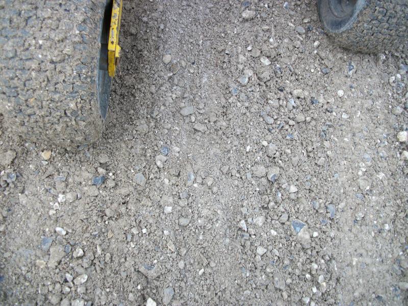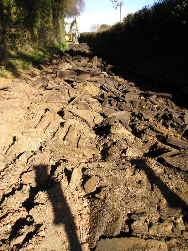 The following illustrates the renovation method. These photos are examples of the maximum material size we are able to handle and confront in some cases and merely best illustrate the process. Any aggregate track with potholes can be renovated by us, we don't only do these mean looking ones.